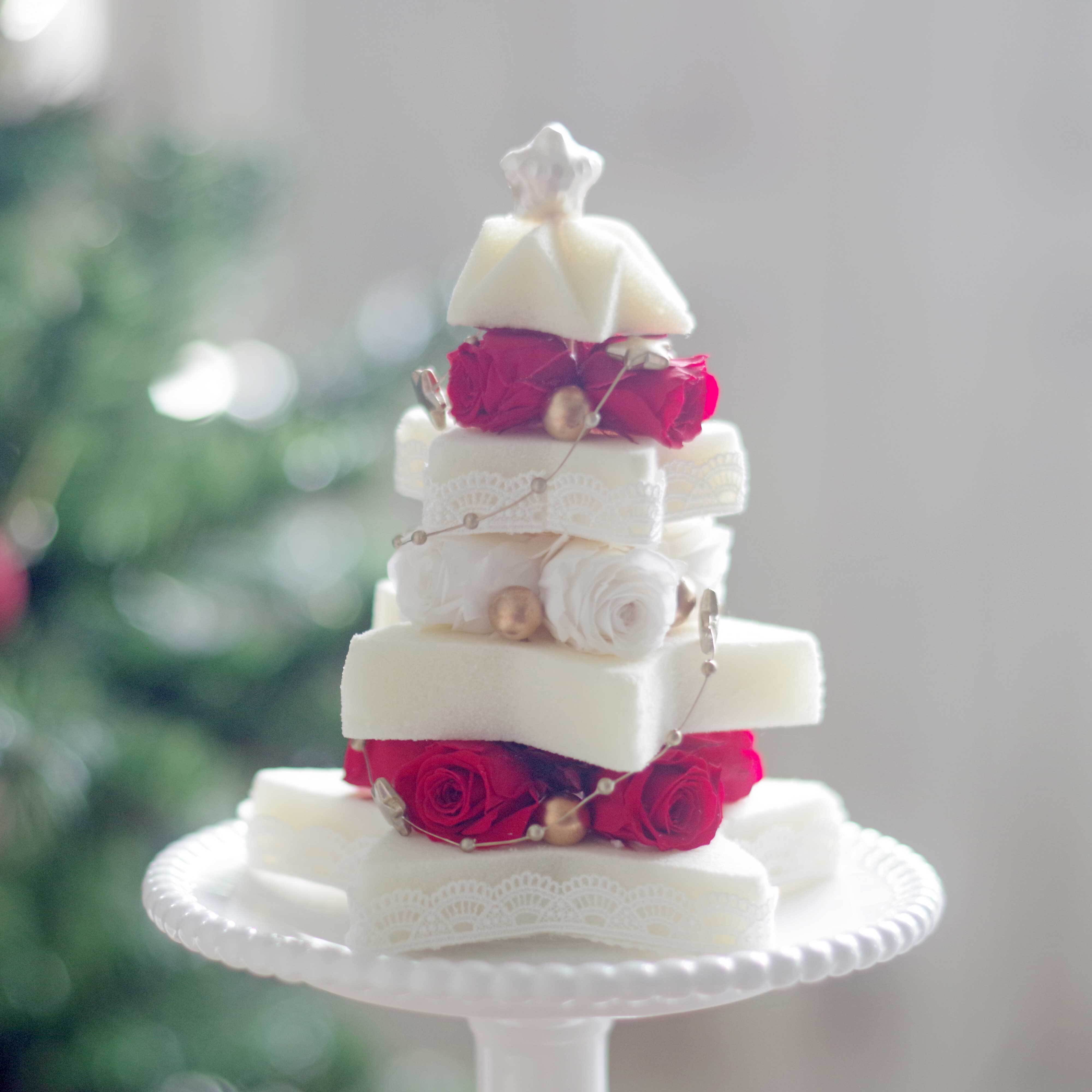 星形のフォームで赤と白のプリザーブドローズを贅沢にサンド。