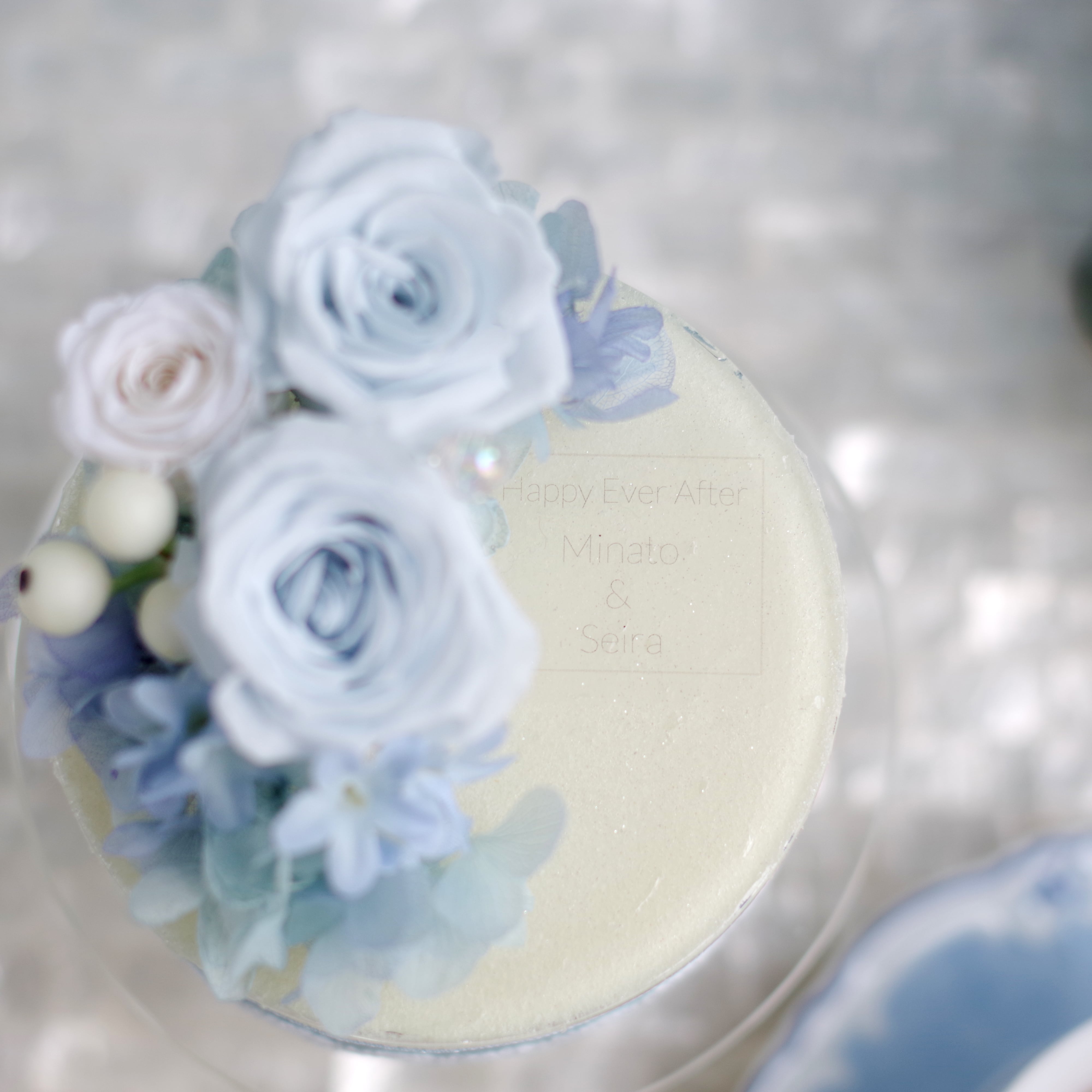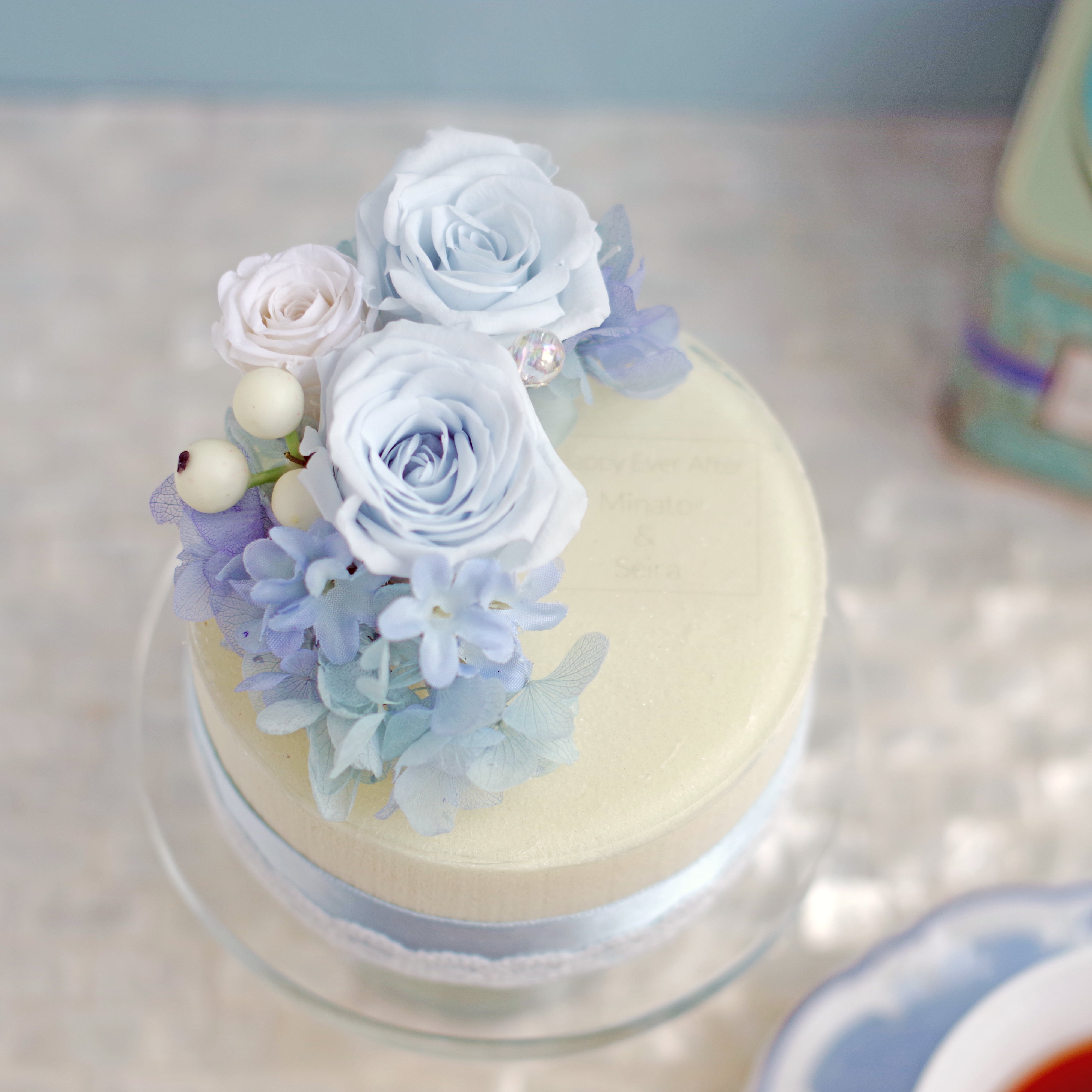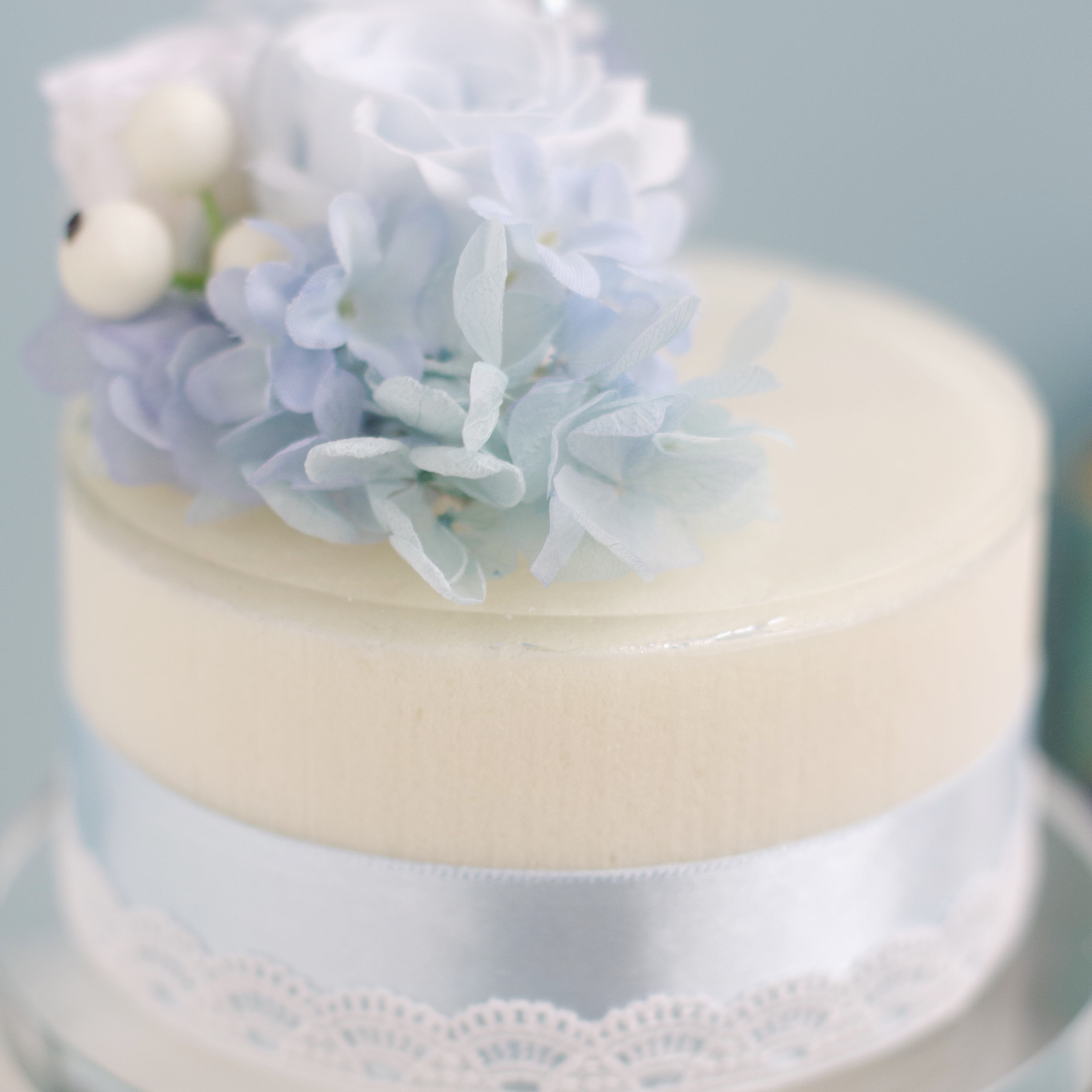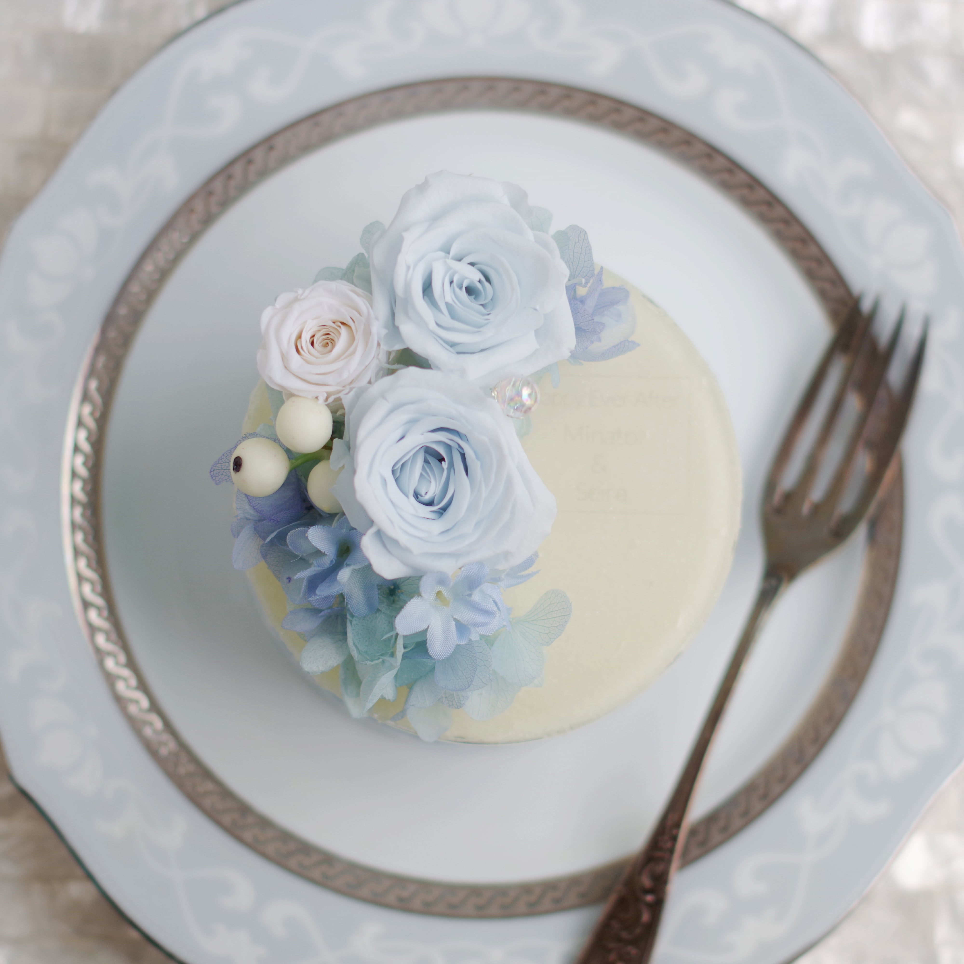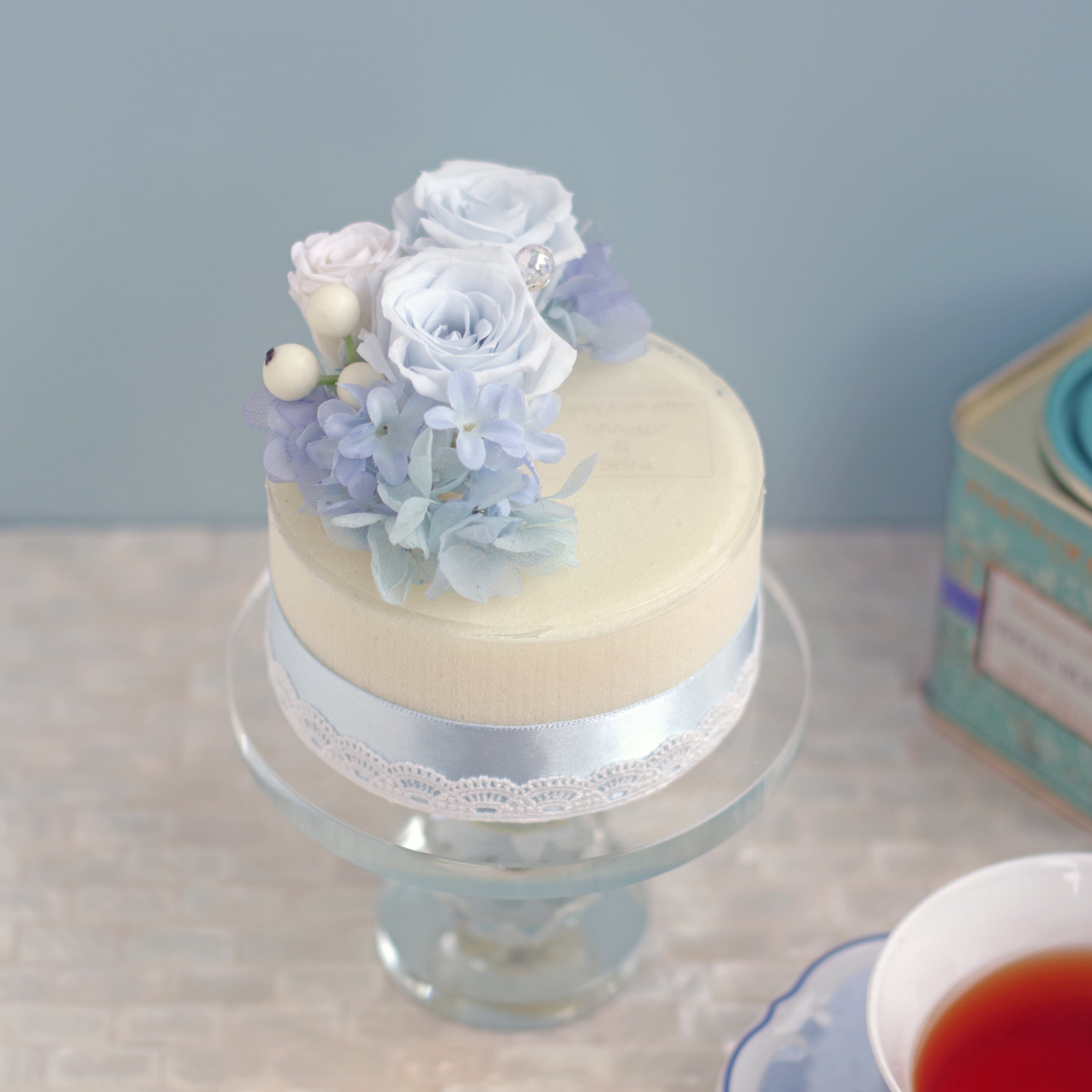 レアチーズケーキ風プリザーブドフラワーアレンジメント。