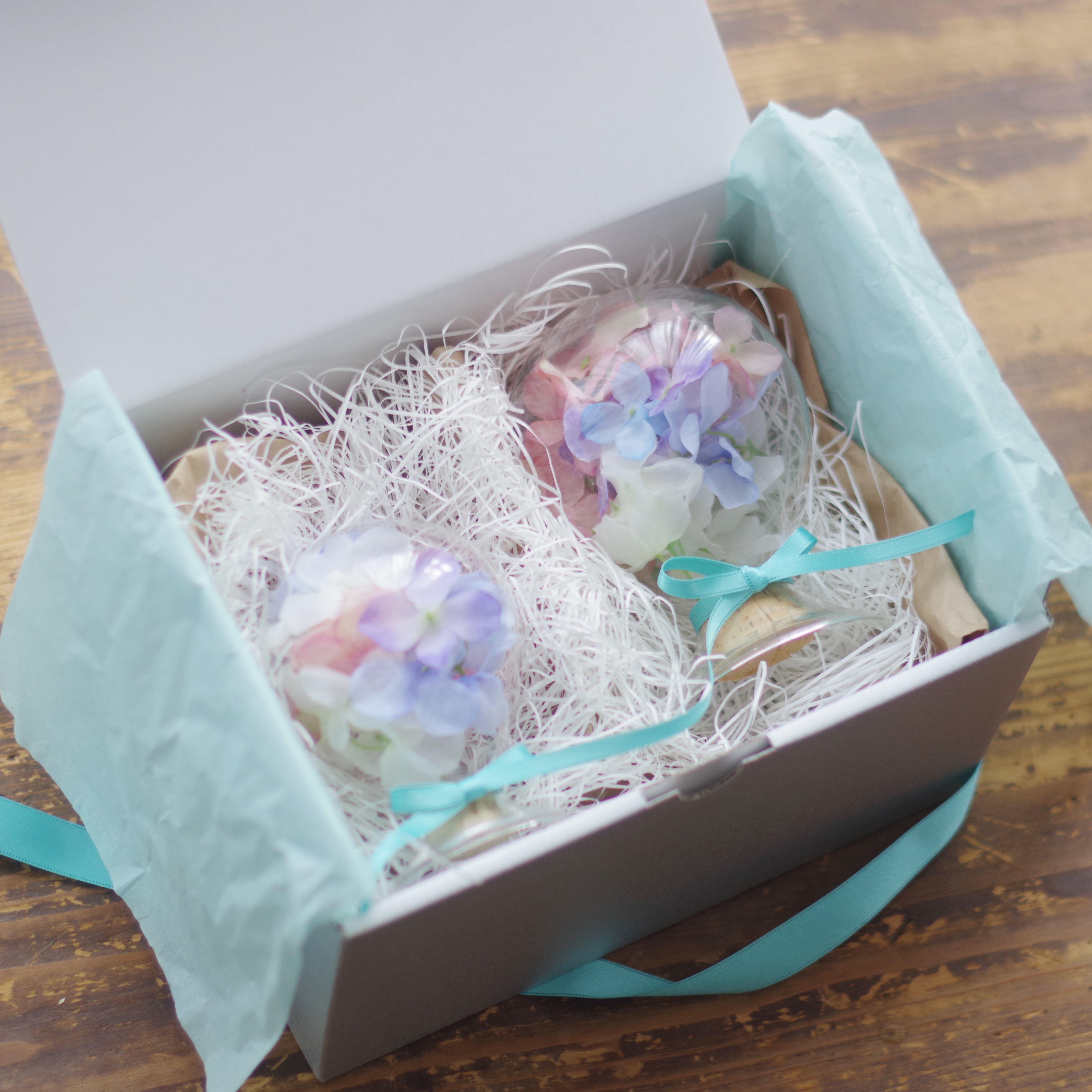 色とりどりのアーティフィシャルのあじさいをつめて、