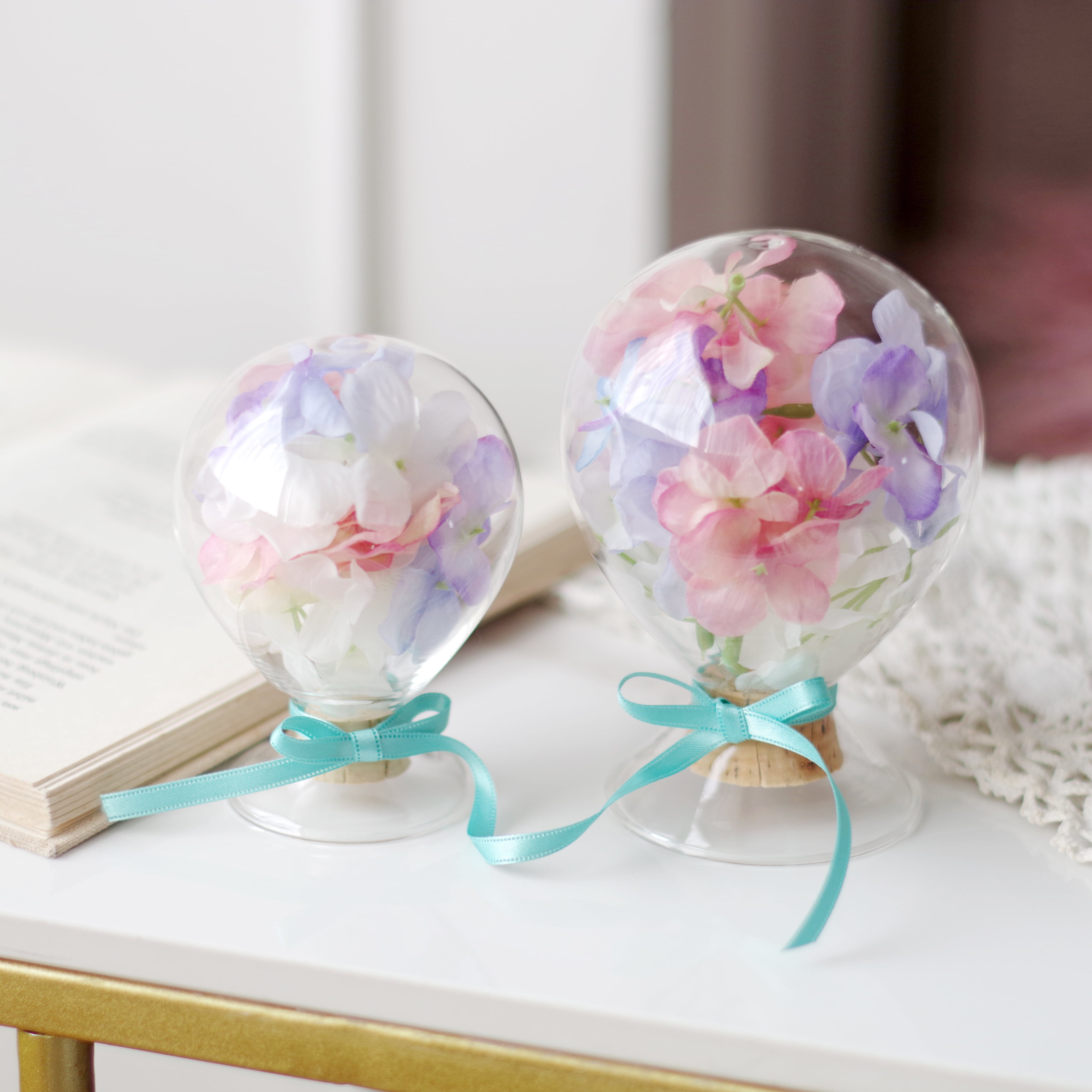 ピンクやブルー、ホワイトなどの淡くやさしい色合いでまとめ、